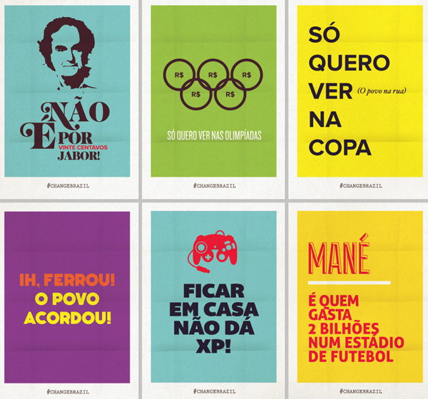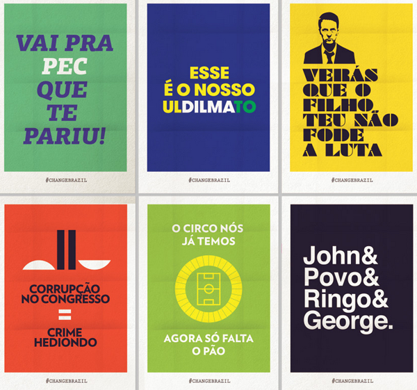 Já os designers do estúdio Isabela Rodrigues Sweety Branding Studio, inspirados por essa onda de manifestações, criaram diversos cartazes supercriativos com palavras de ordem, memes, músicas, e expressões já conhecidas pelos usuários de redes sociais, para ajudar a espalhar essa mensagem pelo Brasil.