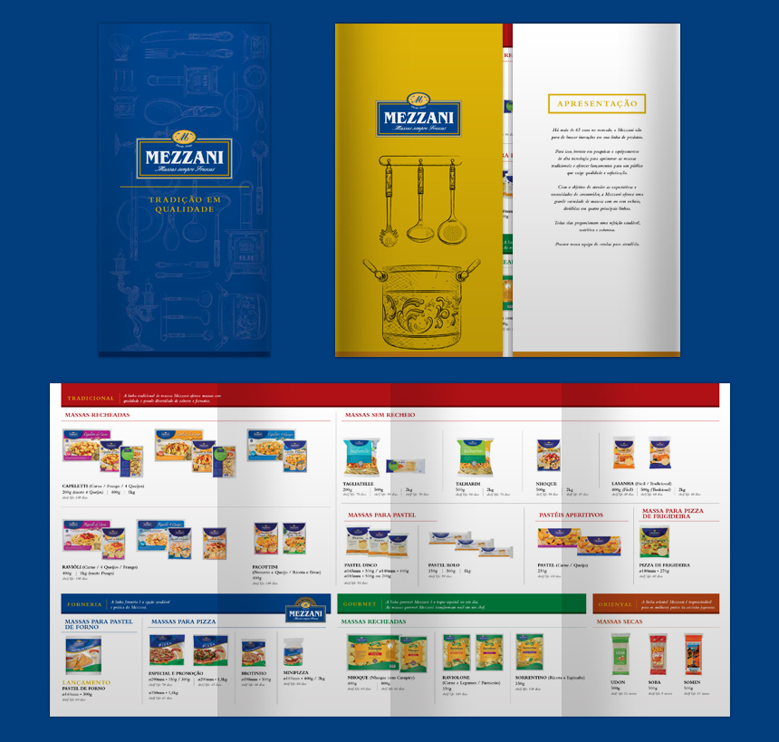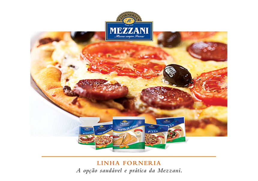 Para a Mezzani, uma empresa tradicional de Bauru que tem destaque por produzir uma grande variedade de massas, a PÃO desenvolveu o stand e os materiais de divulgação da APAS 2013, que tinham como objetivo principal divulgar a nova linha de produtos, Forneria, e lançar o pastel de forno dessa mesma linha.